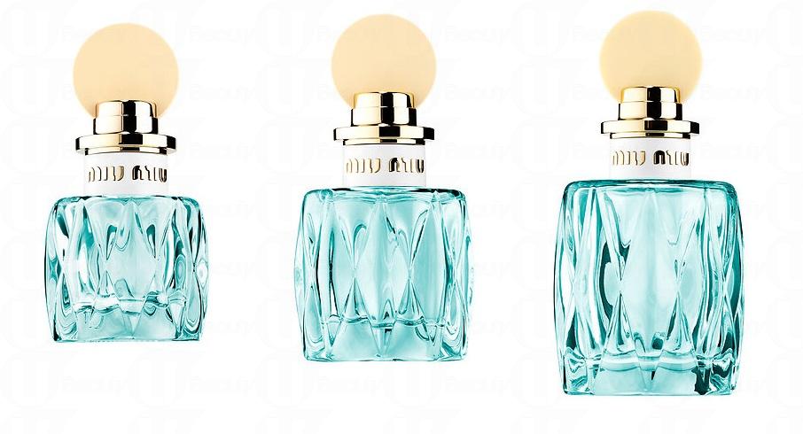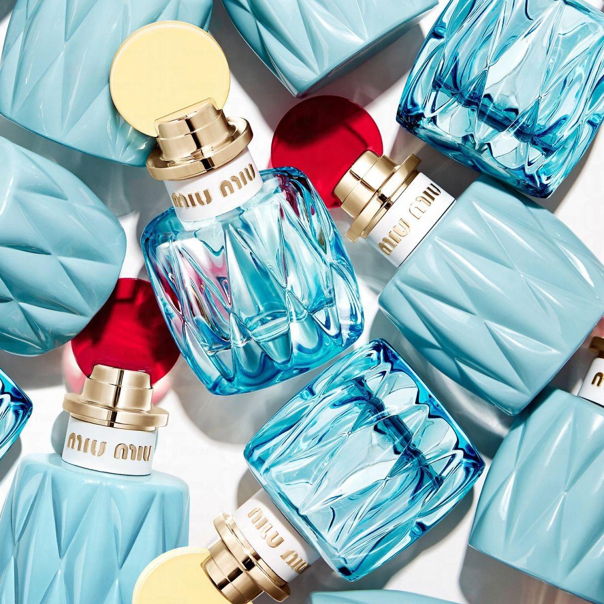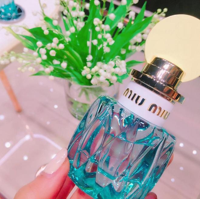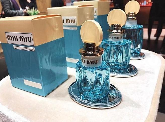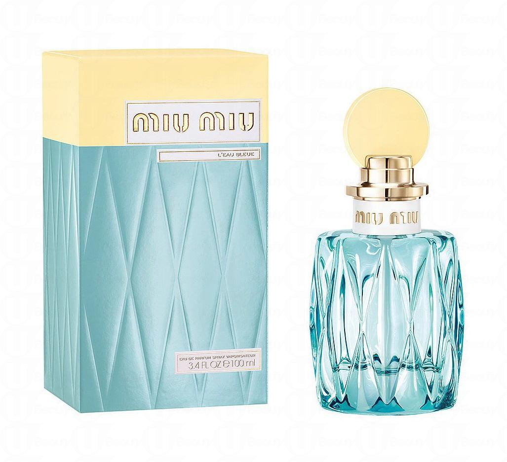 繼第一款香水Miu Miu Eau de Parfum後,於2017年推出的新版香水名為Miu Miu L'Eau Bleue。新版香水延續了 Miu Miu 的經典設計,瓶身由飽和的粉藍色變成了更清澈的透明粉藍,而塑料瓶蓋則換上了柔和的淡黃色。