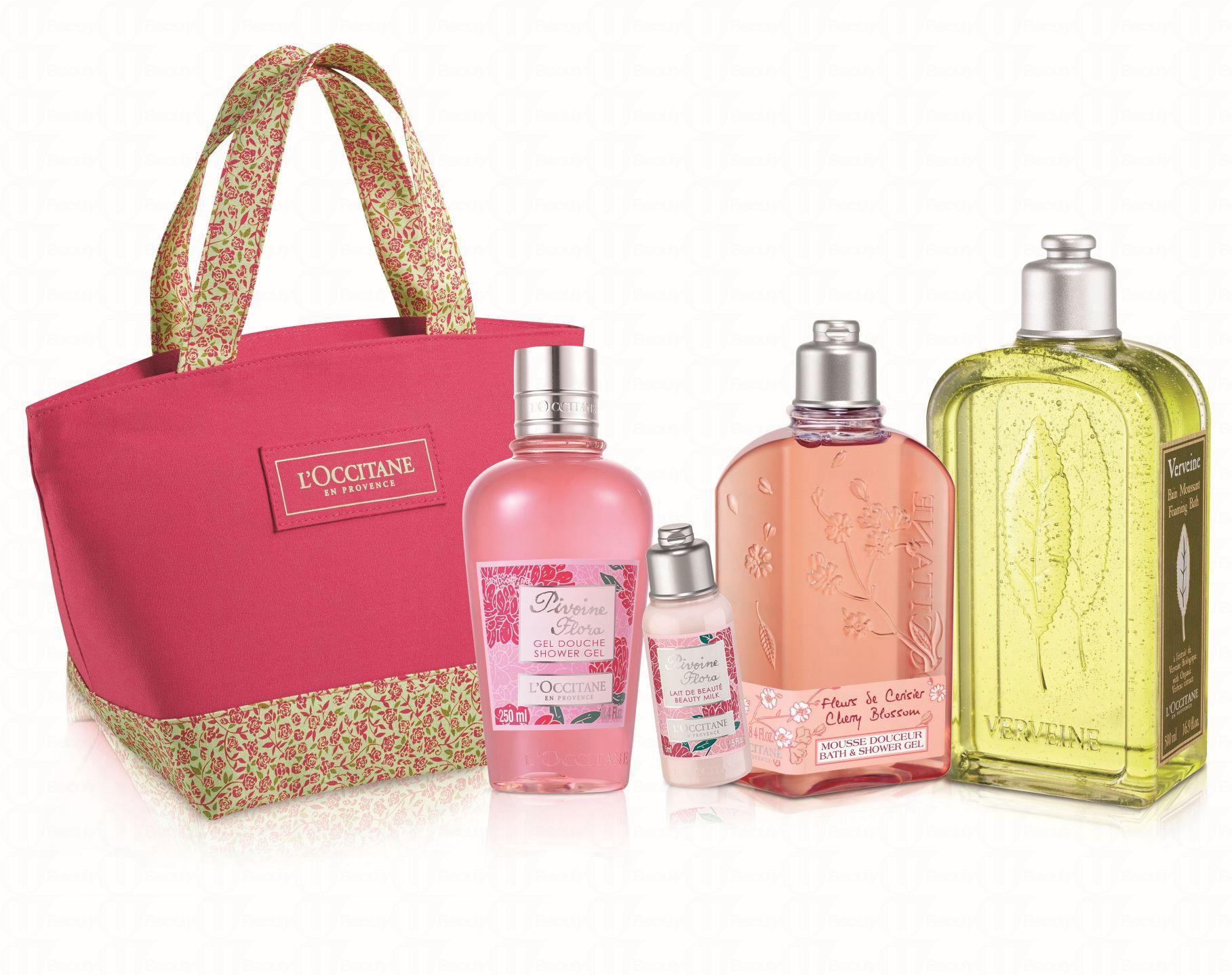 包括: 馬鞭草沐浴啫喱500ml、櫻花沐浴啫喱250ML、牡丹花香沐浴啫喱250ML、牡丹花香美肌乳液 75ml及精美化妝袋。
