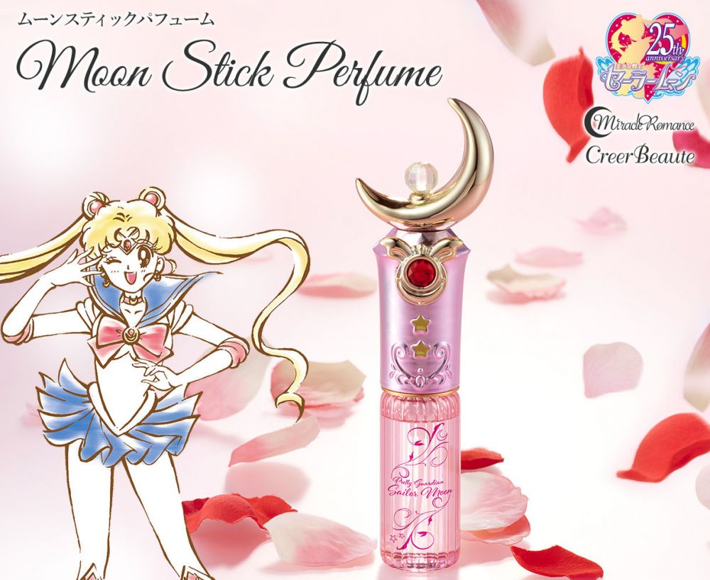 日本BANDAI Creer Beaute 以往推出多款美少女戰士商品,以精緻的外觀為賣點,吸引不少美戰迷收藏。最近品牌新推新月棒造型香水,香調以堅強又令人憐愛的女性形象調配,加入玫瑰、佛手柑、茉莉等香調。淡粉色玻璃瓶身夢幻又充滿少女氣息,配合新月棒設計瓶蓋,很值得收藏!