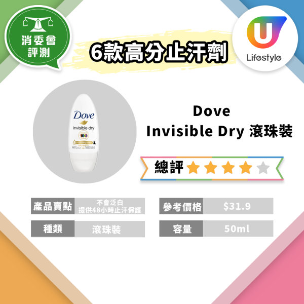 消委會止汗劑推薦 | 第3位:Dove Invisible Dry 滾珠裝 (4星)