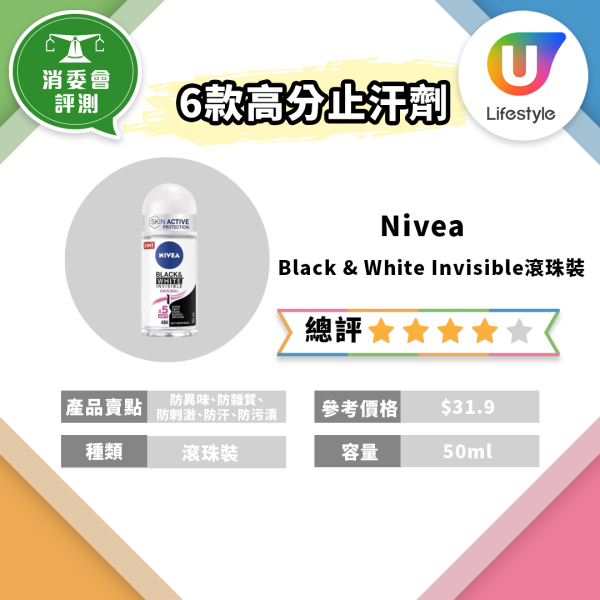 消委會止汗劑推薦 | 第4位:Nivea Black & White Invisible 滾珠裝 (4星)