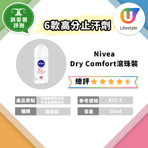 消委會止汗劑推薦 | 第1位:Nivea Dry Comfort 滾珠裝 (4.5星)