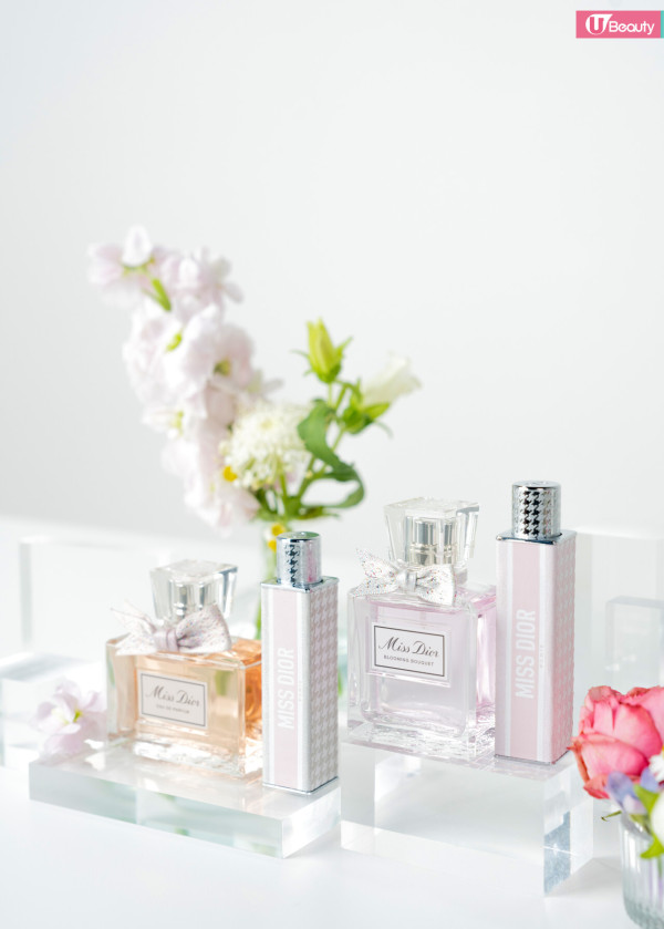 半透明香薰膏蘊含玫瑰蠟和精油,一抹順滑推開,帶來輕盈‧舒適‧水潤‧芬芳的香氣體驗。同時採用純天然的有機色素,分別為香薰膏增添明亮色彩:橙粉紅色(Miss Dior香薰),以及迷人淡藍粉色(Miss Dior Blooming Bouquet淡香薰)。