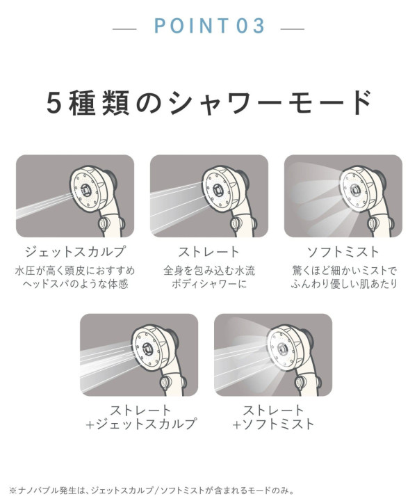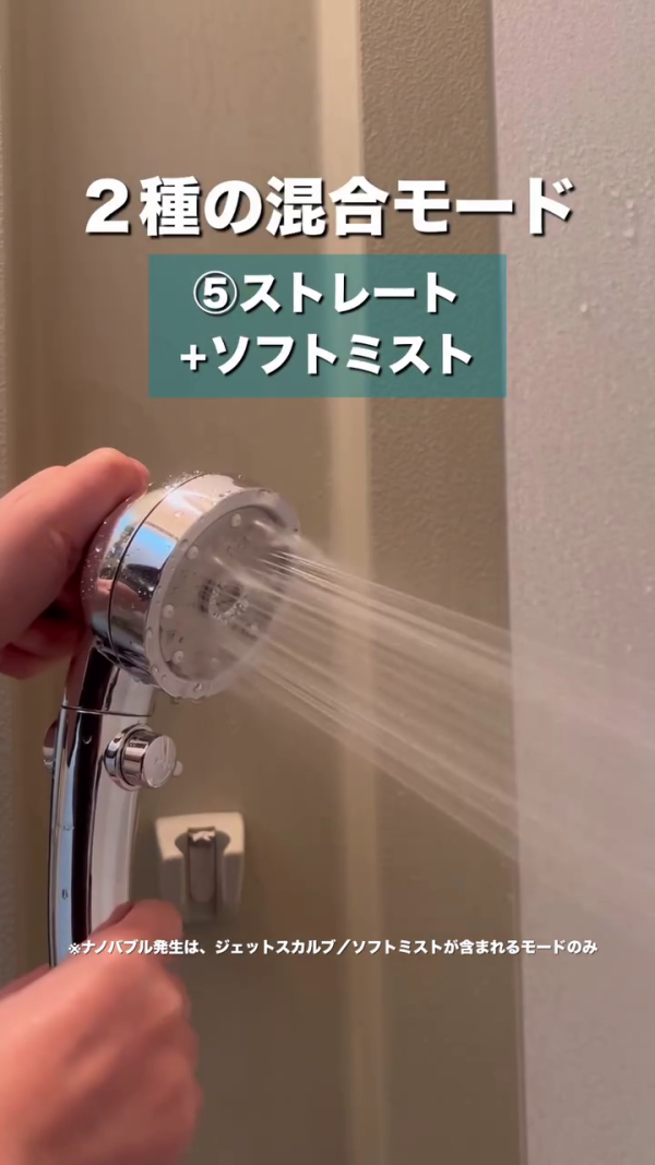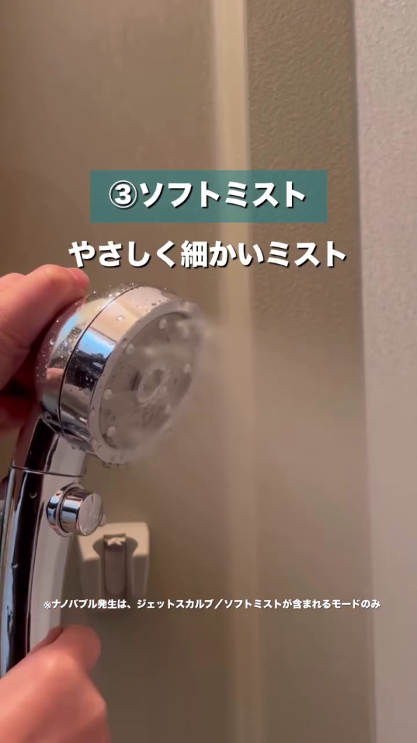 SOFT MIST(柔霧模式): 驚人的細膩水霧,觸感輕柔,最適合用來洗臉。能避免強水壓拉扯肌膚,同時利用微細氣泡溫和潔面。