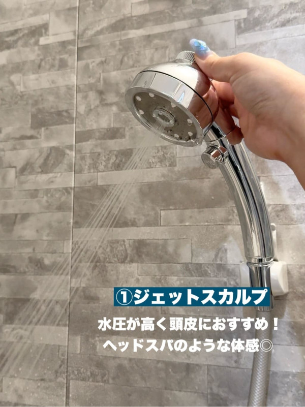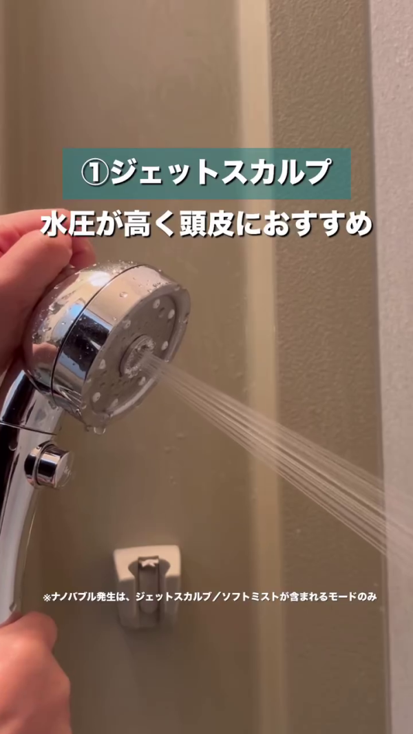 JET SCALP(頭皮噴射模式): 水壓較高,專為頭皮護理設計。強勁的水流能帶來像 Head Spa 一樣的爽快感,深層清潔頭皮毛囊。