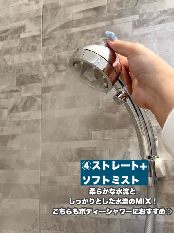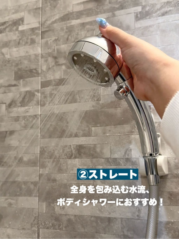 STRAIGHT(直流水模式): 能夠包覆全身的標準水流,適合沖洗身體。