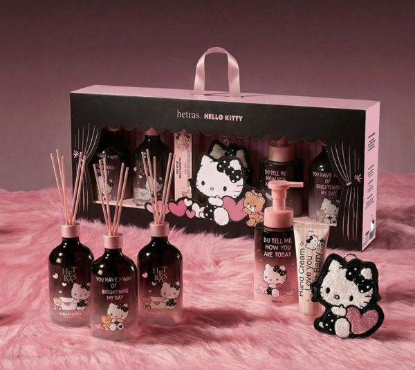 Hetras. X Hello Kitty 系列已經正式發售!大家可以在韓國官方網站、實體店以及 Olive Young 買到。在韓國旅遊中的你,不妨將這套療癒系香氛加入購物清單,讓房間每天都散發著 Hello Kitty 的甜美氣息!