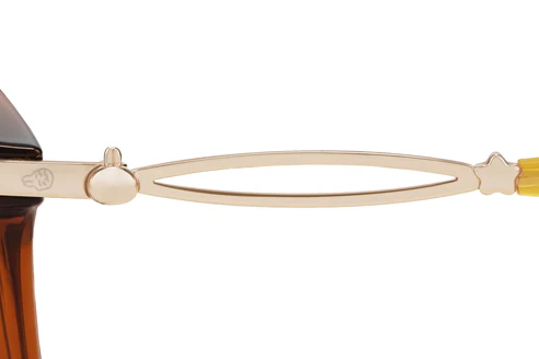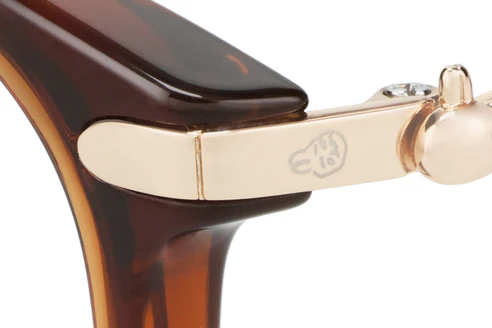 靈感來自與 Chiikawa 回憶的「被誇獎的絲帶」,樁頭部分呈現八字紋理,就像小八本人一樣。鏡架鑲著的金屬裝飾就是小八珍重的絲帶。
