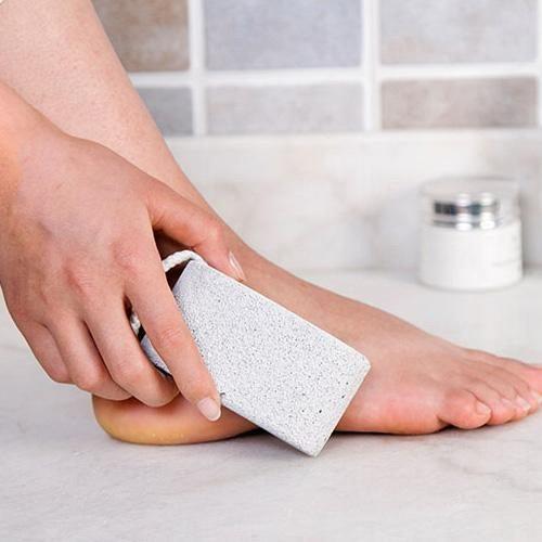 很多人的腳背、側面與腳底都有著乾燥的死皮,夏天時穿著涼鞋或拖鞋時都會影響美觀,建議可先將腳泡在水中軟化皮膚,再以浮石(火山石)去角質。浮石是一種火山碎屑岩在一般藥妝美妝店都能買到,能夠去除死皮。