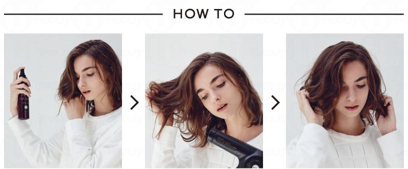先直接噴於乾或濕髮的表面上,然後提起髮根,噴在髮根位置以增加髮量,建議使用風筒吹鬆頭髮以營造加倍豐盈感,完成一般造型程序後可再次噴上,令效果更持久!
