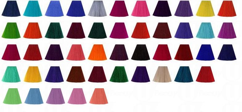 整個系列有48種顏色可選,一般漂過髮的朋友用這隻染髮膏都是100%顯色。如果本身是深髮色的話,比較建議由紅色系列、綠色系列、粉色中的Hot Hot Pink等幾款顏色入手,顯色度會較高。