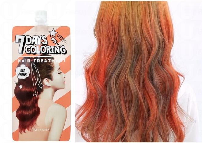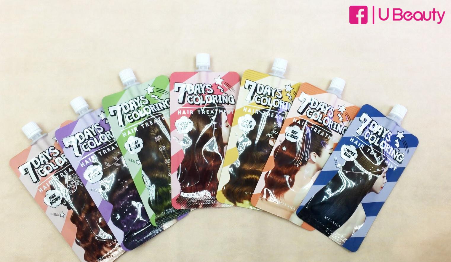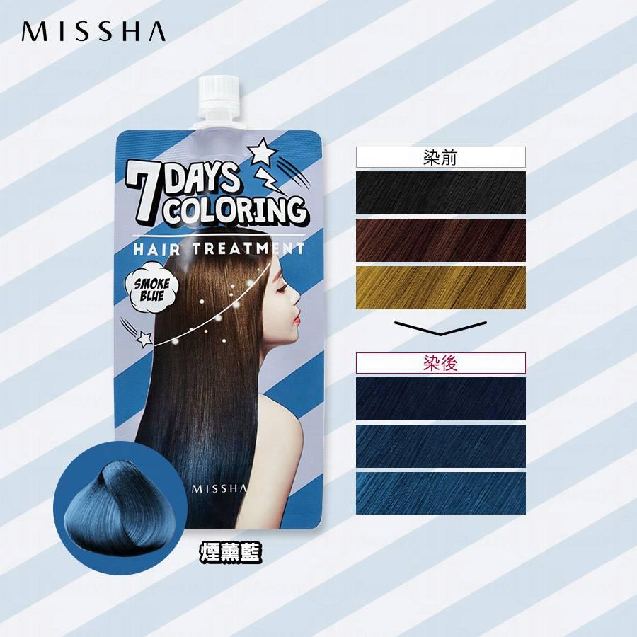 MISSHA 7日染髮護髮素共有7款顏色,包括煙薰藍Smoke Blue、卡其綠Khaki Green、櫻桃紅Cherry Red、橘紅色Red Orange、粉嫩啡Pink Brown、金黃色Yellow Gold及薰衣草紫Lavender Purple。