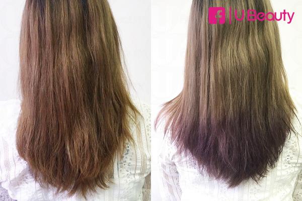另一位曾漂過一次髮的女小編亦試用了Lavender Purple薰衣草紫色染髮尾部份,紫色也尚算出色,但比官方圖片深色。