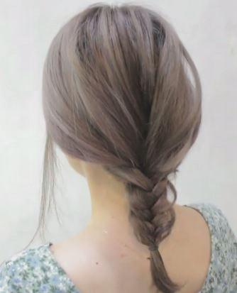 像三股辮那樣,但每次抽出外側頭髮的小一束,移進中間,其餘的分成左右兩束,一直重覆此步驟。