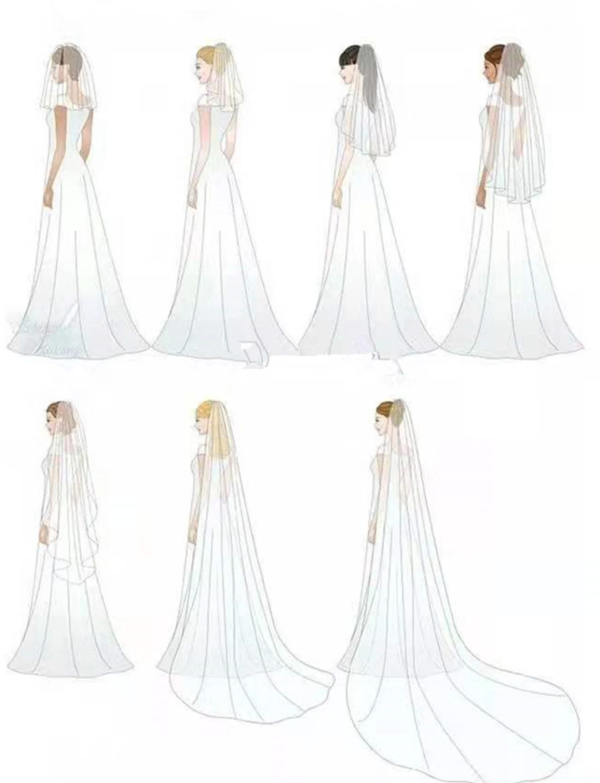 當談及頭紗,不得不提的是指尖式頭紗(Fingertip),這種風格在英國凱特王妃的婚禮上大放異彩,因其輕薄的布料不僅能展現婚紗背部的精緻設計,還能營造出一種夢幻而浪漫的氛圍。這類頭紗的設計既優雅又具有現代感,非常適合追求時尚和獨特風格的新娘。