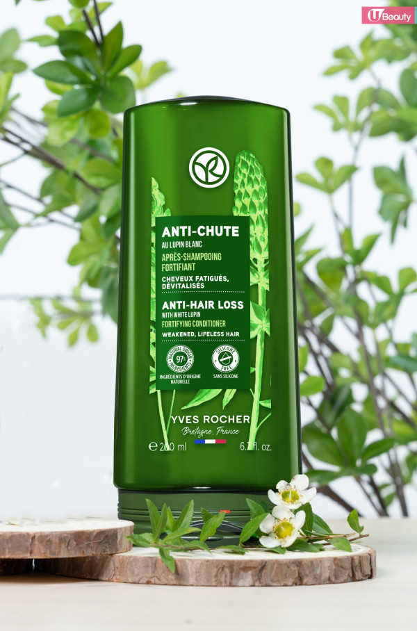 YVES ROCHER防脫髮護髮素,同樣富含水解白羽扇豆種籽精華、有機龍舌蘭提取物和維他命B5,專為加強秀髮韌性而設計,減少打結,使秀髮更加柔順、有光澤,同時有效地減少斷髮問題。為了獲得最佳的防脫髮效果,推薦護髮素與同系列洗髮露一起使用!