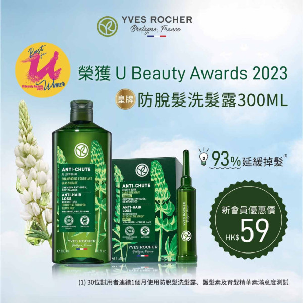 【U Beauty讀者專享優惠】現時新會員可以優惠價入手YVES ROCHER皇牌防脫髮洗髮露!
