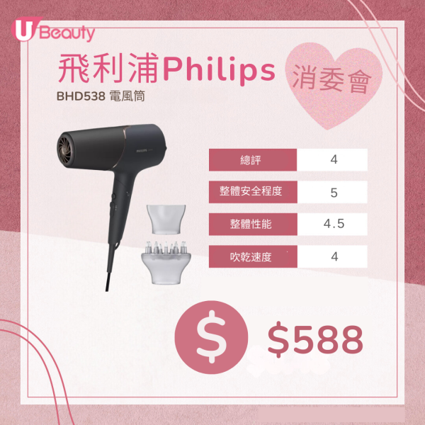 消委會高評分風筒推薦 4. 飛利浦Philips BHD538 電風筒 $460