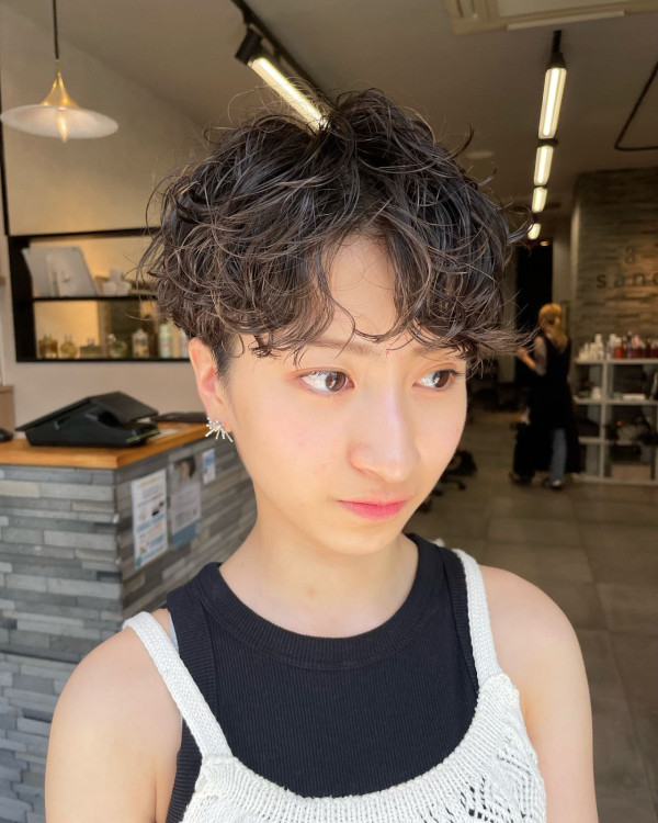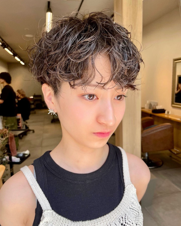 - 超短髮型推薦11.紋理燙精靈短髮|適合圓臉女生