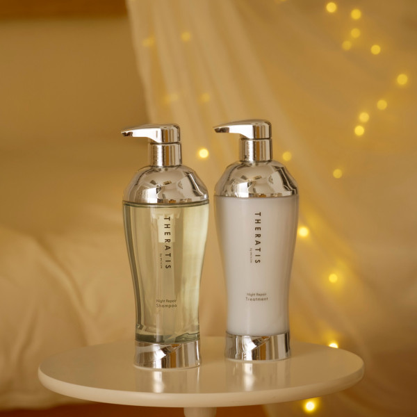 由洗髮水、護髮素、髮膜以至髮油均一應俱全的Theratis Night Repair夜間修復系列,額外加碼注入由水溶膠原蛋白為主角的髮絲補充劑,為頭髮全面補充營養,洗後髮絲清爽無負擔;同時滲進薰衣草、洋甘菊及茉莉香氣,散發放鬆精神的舒緩力量,提升睡眠質素。