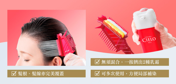 產品亦附上特設的專用染髮梳,全面照顧髮根及髮鬢位置,令你自己在家染髮都可以均勻上色。