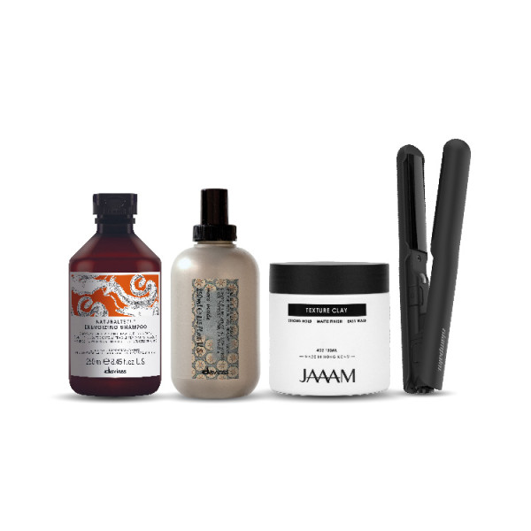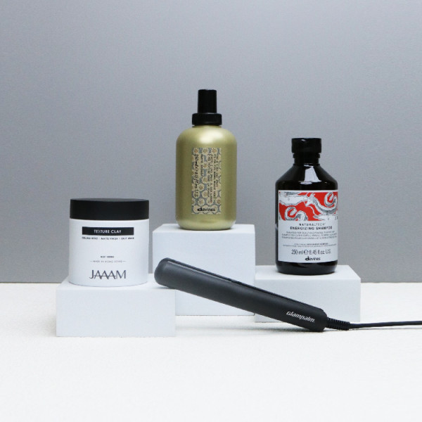 產品特色: - GP103 Double-C迷你造型夾:這款造型夾採用創新的弧形板面設計,輕鬆做到理想的蓬鬆度和捲度,從瀏海到髮根蓬鬆都能輕鬆搞定,適合各種髮型需求。機身輕巧,僅86克,方便隨身攜帶。 - JAAAM啞色髮泥:專為香港潮濕氣候設計,具備超強定型能力,全天保持髮型不扁塌。活性碳成份確保造型乾爽不黏膩,水溶性配方易於清洗,保持頭皮健康。 - Davines育髮洗髮露、海鹽噴霧:洗髮露溫和清潔並平衡頭皮健康,促進髮絲生長。海鹽噴霧亦可用於造型前打底,增加髮量和支撐力,提升髮型的豐盈感。