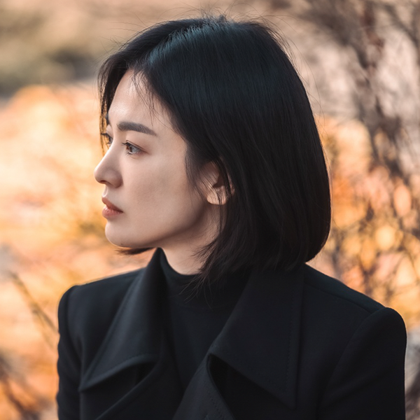 被譽為宋慧喬近年來最具衝擊力的髮型之一的《黑暗榮耀》中分及肩短髮,精準的一刀切剪裁,沒有任何多餘的層次,線條乾淨利落。髮尾帶有C字內彎,增加髮型的份量感同時避免呆板,一頭烏黑亮麗的黑髮更突顯角色的神秘且堅不可摧的氣息。加上劇中角色常以極簡、暗色系穿搭出現,髮型完美呼應角色的極大氣場,每一個畫面都充滿無聲的壓迫感。
