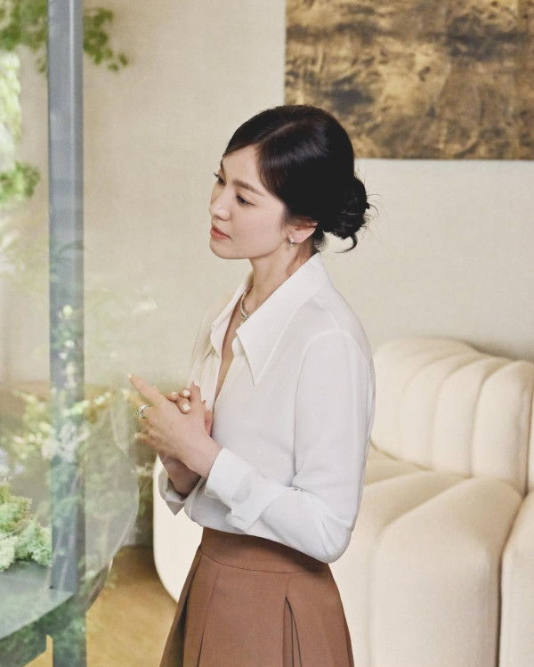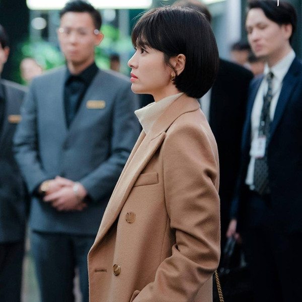 宋慧喬在《現正分手中》雲朵捲中長髮,完美展現出女性剛柔並重的雙重魅力!髮型捲度偏大而鬆散,如同雲朵般輕盈柔軟,搭配標誌性的S型八字瀏海,修飾顴骨線條,為整體造型注入了浪漫氣息 。暖茶棕色的髮色不但能襯托膚色,更增強了捲髮的柔和質感,散發慵懶隨性的氣息! 髮型完美平衡角色職場穿搭如西裝外套的硬朗感,同時又與柔軟針織衫、絲質襯衫等日常穿搭相得益彰!