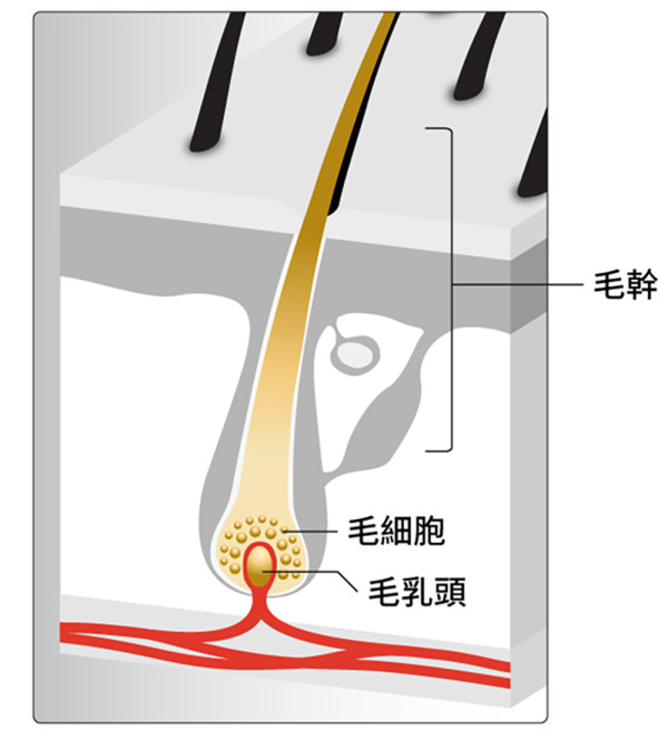 當毛乳頭受損時,會變得難以供養毛髮所需營養,令頭髮逐漸幼弱,失去再生能力。