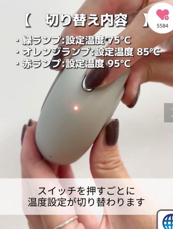 別看它小小一個,功能卻不馬虎。它配備了三段溫度調節:綠燈約 75℃(適合細軟髮或瀏海)、橙燈約 85℃、紅燈約 95℃(適合一般髮質)。透過單一按鈕即可切換,預熱速度快,忙碌的早晨也能迅速使用。