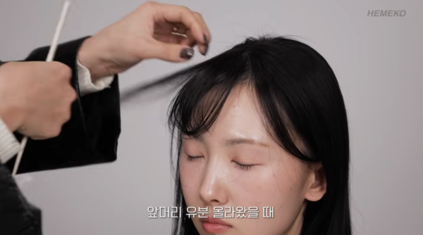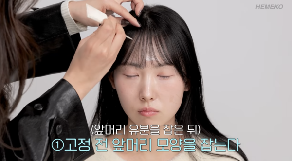 髮型師 보다쌤 教路,在開始造型前,可使用乳霜狀的「去油護髮霜」,直接抹在瀏海上,幫助吸走多餘油份,保持髮絲乾爽。