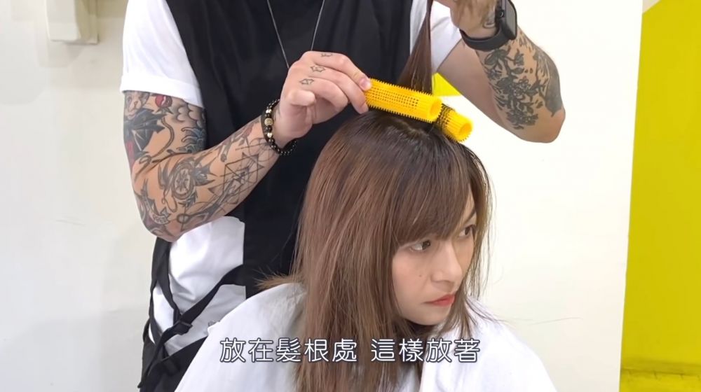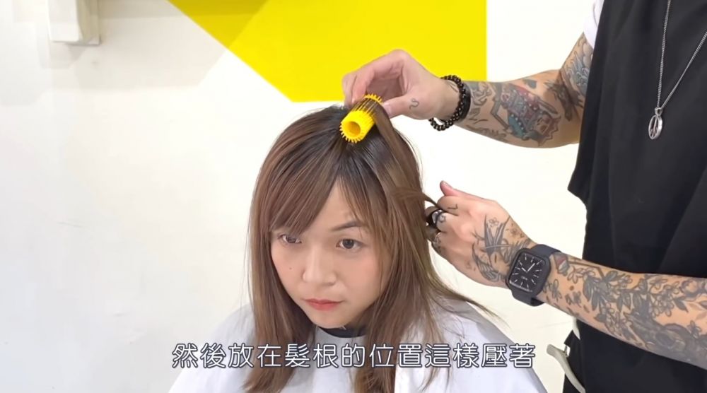 然後便可以利用髮捲,把髮捲放在貼近髮根的位置,完成後便可以處理另一邊的頭髮。