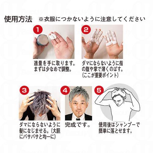 用法就是拿出適量的髮蠟,塗抹於頭上想染色的部份後抓鬆即成。(注意: 視乎想要的效果決定髮蠟量)