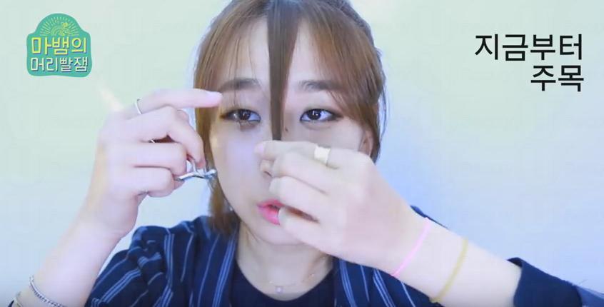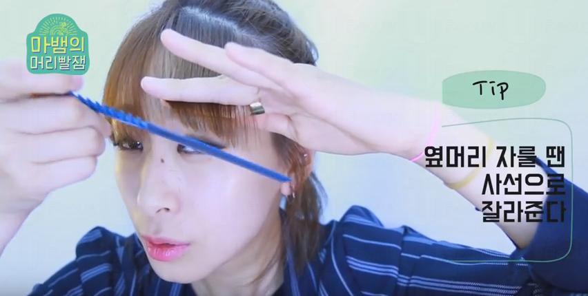 Step 3: 在空氣瀏海的基礎下,把中間一撮頭髮平腳剪去5-7mm。
