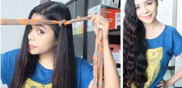 如果你家中沒有髮帶,可以用一條毛巾甚至T-shirt代替,將毛巾或T-shirt捲成圈狀並用橡筋固定形狀,放到頭頂上,然後將頭髮沿著毛巾圈或T-shirt圈捲起,睡醒後頭髮就會自然變曲。