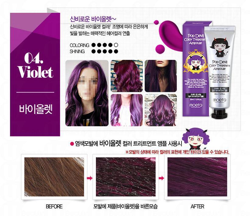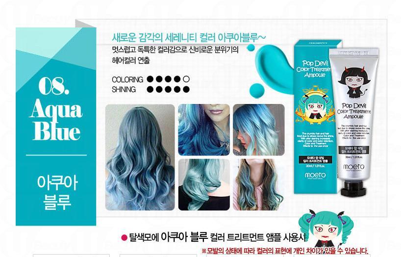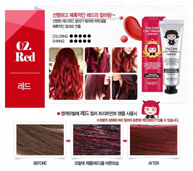這款產品名叫「魔鬼顏色焗油」 (Moeta Pop Devil Color Treatment Ampoule),它被稱為「魔鬼」的原因,是它提供的選色都非常大膽,絕對是喜歡走在潮流尖端的人士所選用,當然它亦有一些常見的顏色可以選擇。
