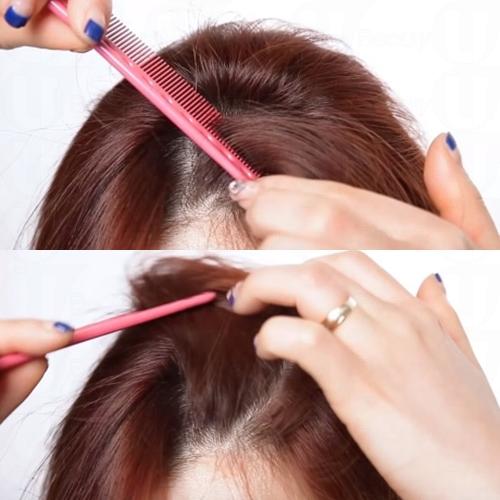 先從平常的髮界旁大約1-2寸的位置,以扁平的齒梳梳起少量頭髮。