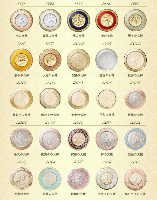 官網上亦有記載每年所推出過的限量蜜粉,由1991年至2009年,蜜粉都是以不同的女神名字來命名;到2010年直至現在,則以天使來命名。