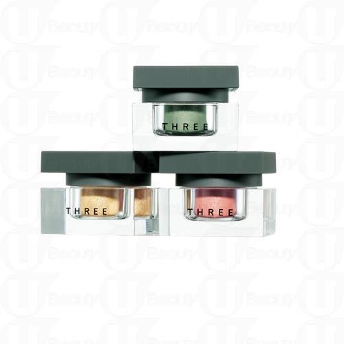 THREE 的迷光眼采粉是種粉霜質地的眼影,顯色度高,加上不同大小的珠光粉末,能夠呈現深邃光澤。