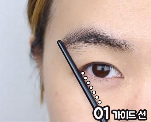 分別從眼頭及眼尾拉直線決定眉長,眼頭與眉頭應成一直線,眉尾應與眼尾及鼻子連成一直線。