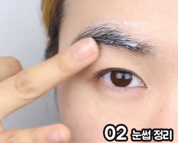 根據上一步描繪的理想眉型,為眉毛塗上潤膚霜,這樣就會有短暫定型的作用,方便修剪眉毛。