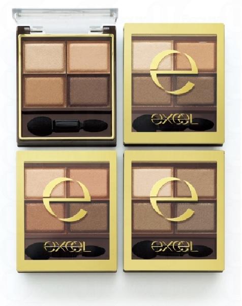 另一款Cosme大賞第一位的excel 裸色深邃眼影,以獨家配方excel GOLD-MIX配製出瑰麗亮澤的大地色系眼影。每盒4色,只需順序由淺至深色使用,即可簡單打造專業級自然漸變妝效,令雙眸更富層次感。眼影粉更蘊含保濕成分「角鯊烯」,滋潤眼周肌膚,妝效持久貼服,減少浮粉脫色。