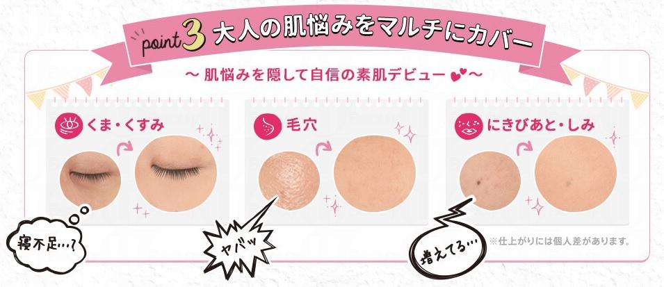 該款遮瑕膏於2016年2月起推出,在短短幾個月內可深得日本美眉的喜愛,自然又強大的遮瑕能力絕對應記一功。遮瑕膏可Cover的瑕疵包括暗瘡、黑眼圈、泛紅,還可以改善面部暗沉!
