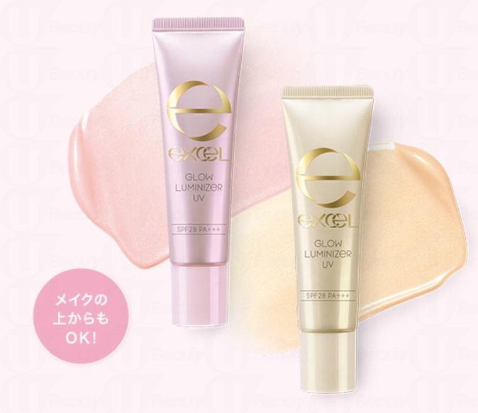 就是這款Excel「奶油忌廉」妝前乳Glow Luminizer UV,甫推出已超有人氣! 系列共有兩種色號可選,一款偏珠光粉色,另一款則是較自然的珠光肉色。