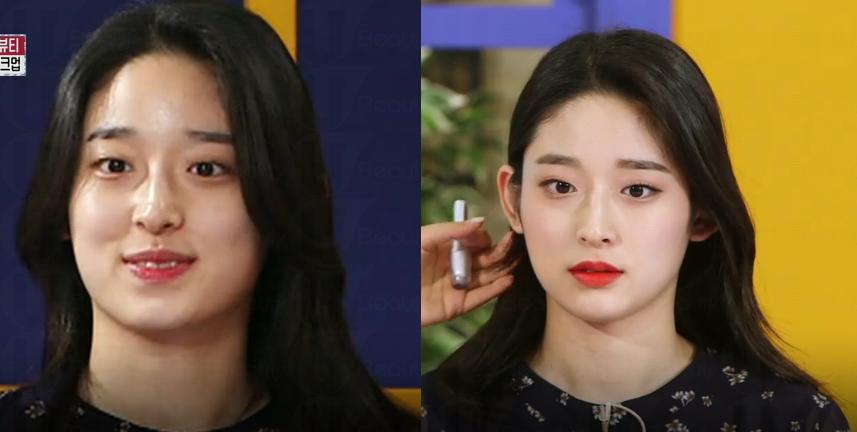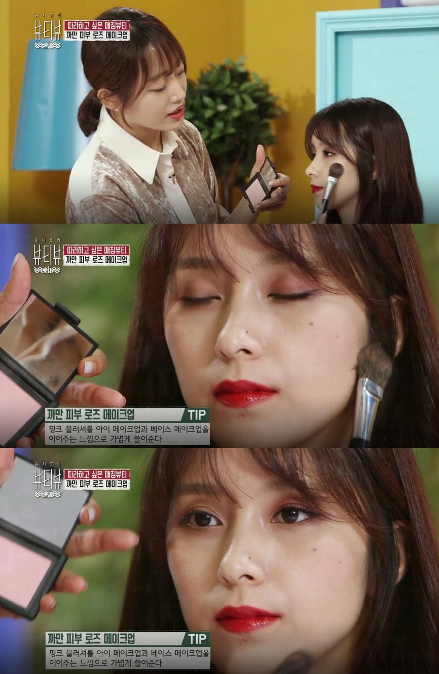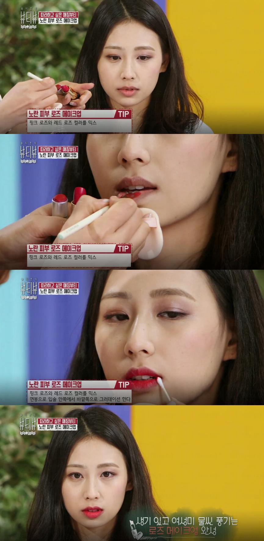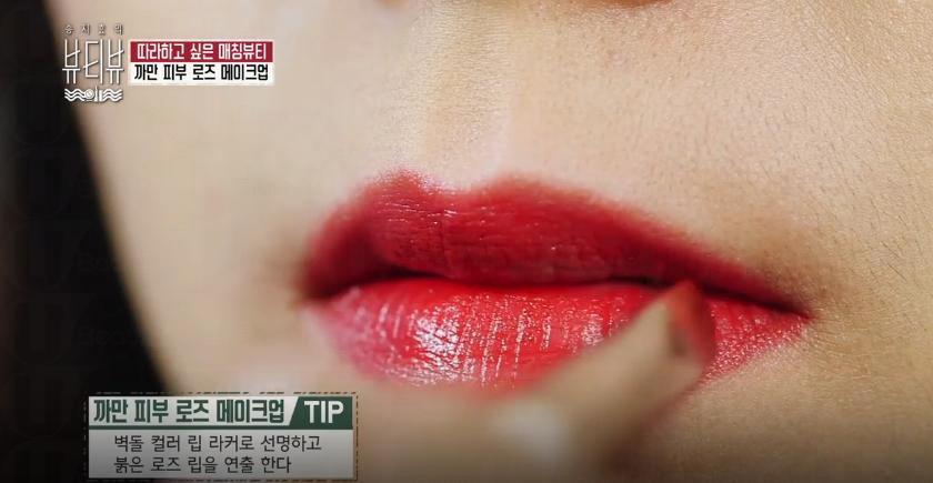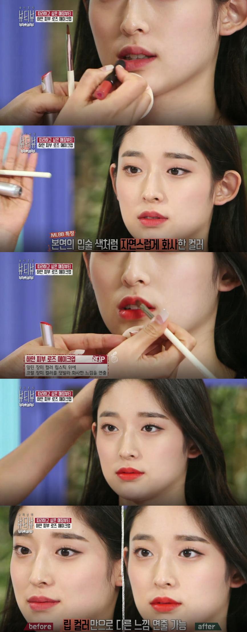 唇妝:化妝師申愛使用MLBB最具代表性的乾玫瑰唇筆,讓唇色看起來像自己的唇色一樣自然。然後,再用珊瑚玫瑰色唇膏,打造有生氣的雙唇,也讓皮膚更顯白。