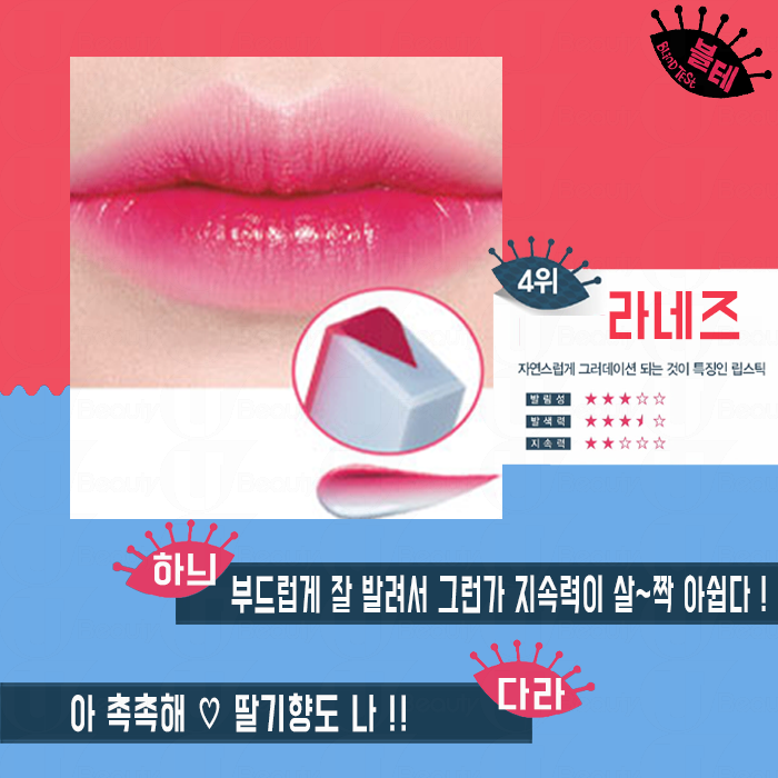 她們都大讚無論是顯色度、順滑度和保濕度都不輸專櫃的大品牌, 怪不得會成為韓國女生心中的第一名!