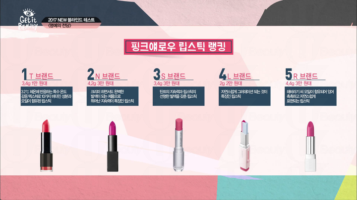 節目選用了5款Pink Yarrow色的唇膏進行盲測,測試5款不同品牌的唇膏的顯色、順滑和持久度。