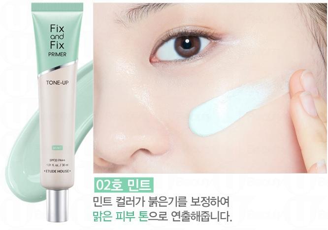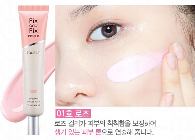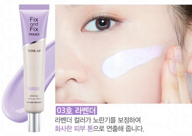 「調色」是新一浪韓妝必備的一步! 利用Etude House Fix and Fix Primer可撫平粗大毛孔及均勻膚色,打造貼服底妝。