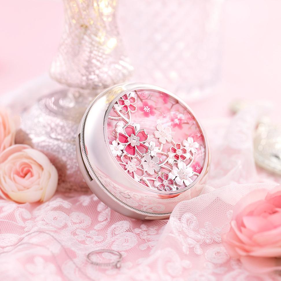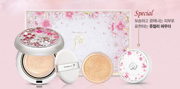 韓國The History of Whoo 后的美白水光氣墊粉底,最近推出限量春天櫻花特別版。銀色粉盒上佈滿宮中滿開的立體櫻花圖案,加上韓國國花──李花香氣,盡顯如皇后般豔麗。