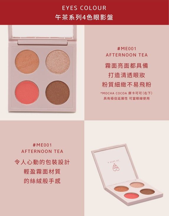 A MINÉ MÉ 午茶cafe 4色眼影盤(售價台幣450、港幣約115)